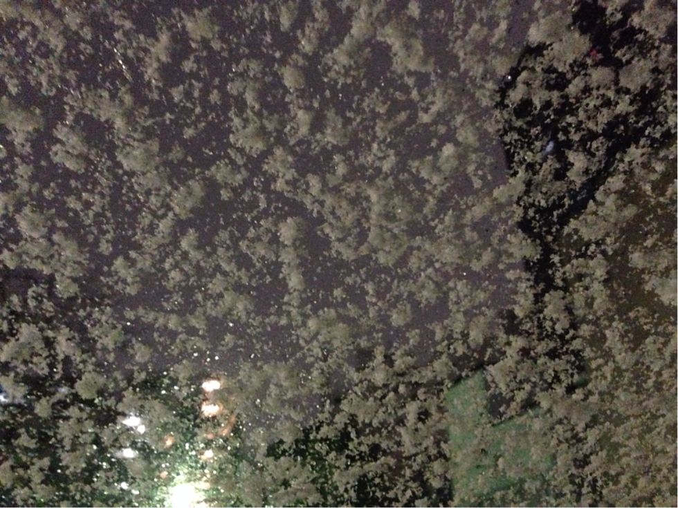 カップルの間を縫って遠目から半笑いで自撮り。笑
